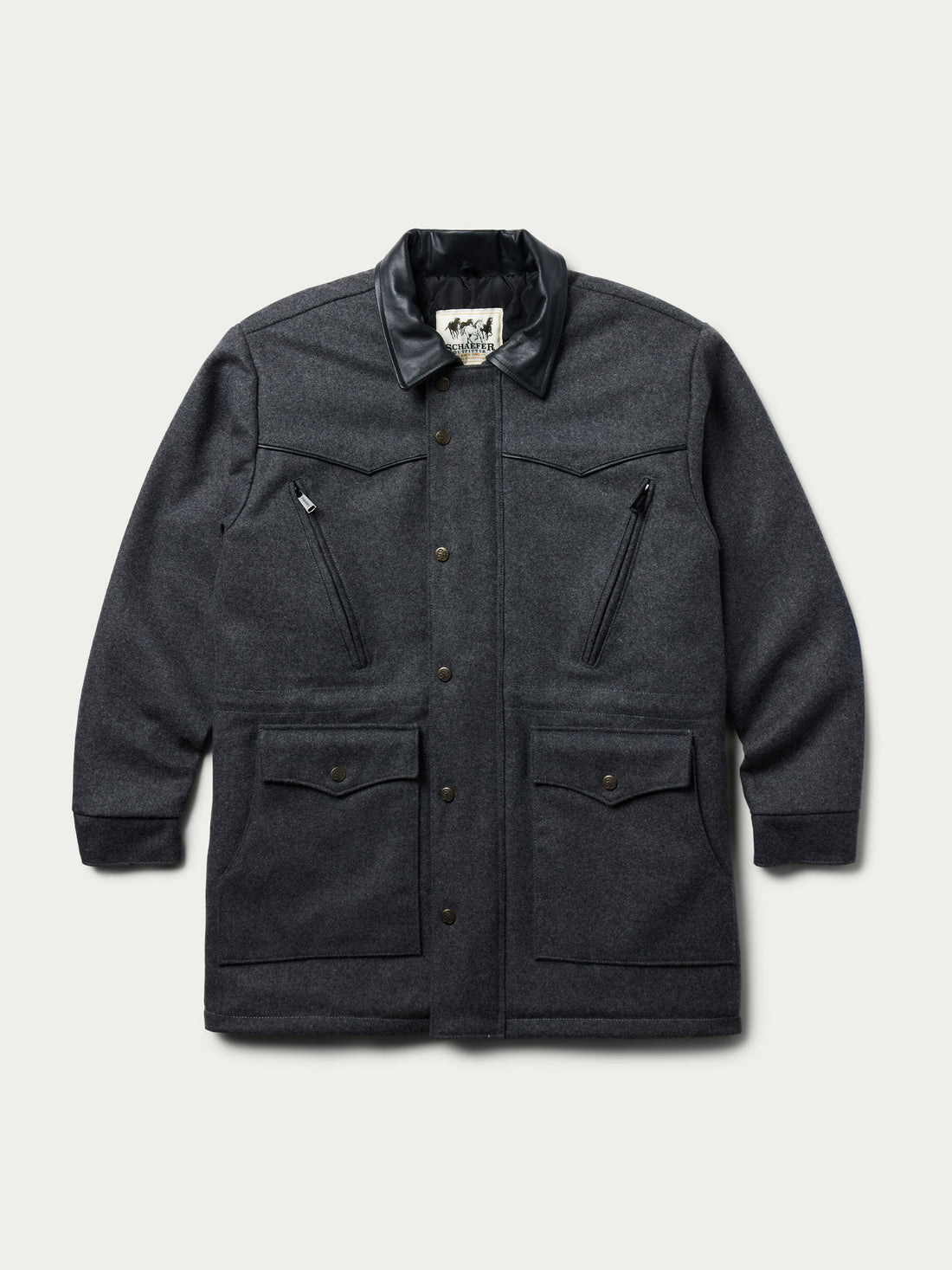 Charles Distressed Black Leather Shearling Double-Breasted Coat