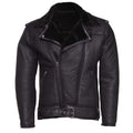 Black on Black Shearling Biker Jacket with Belt