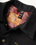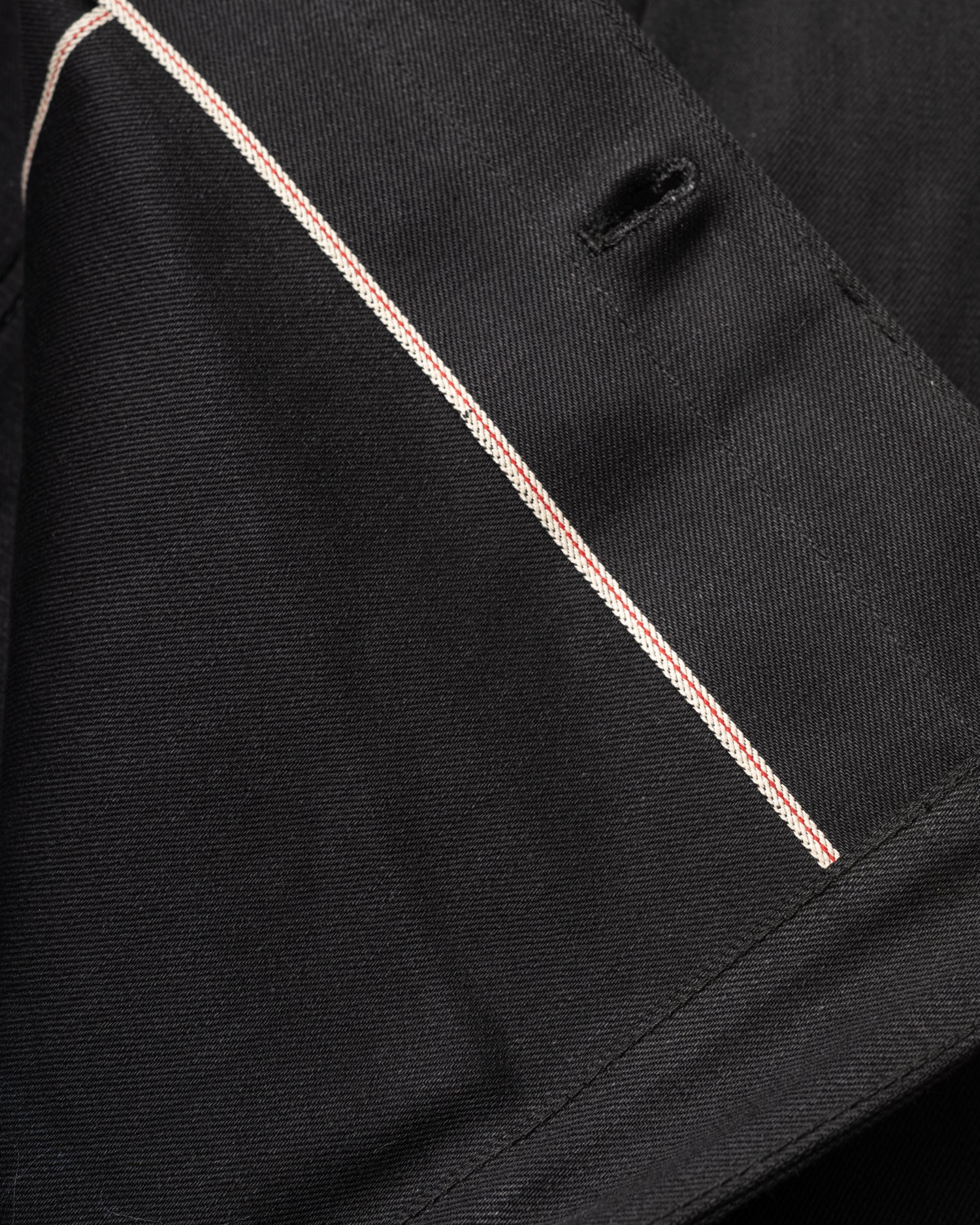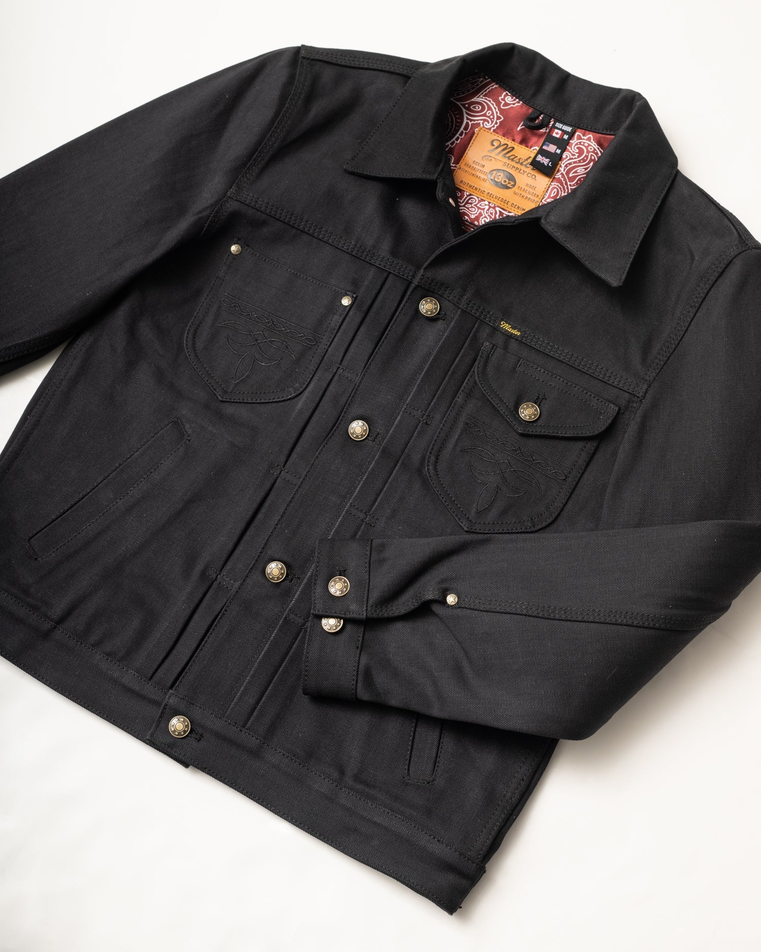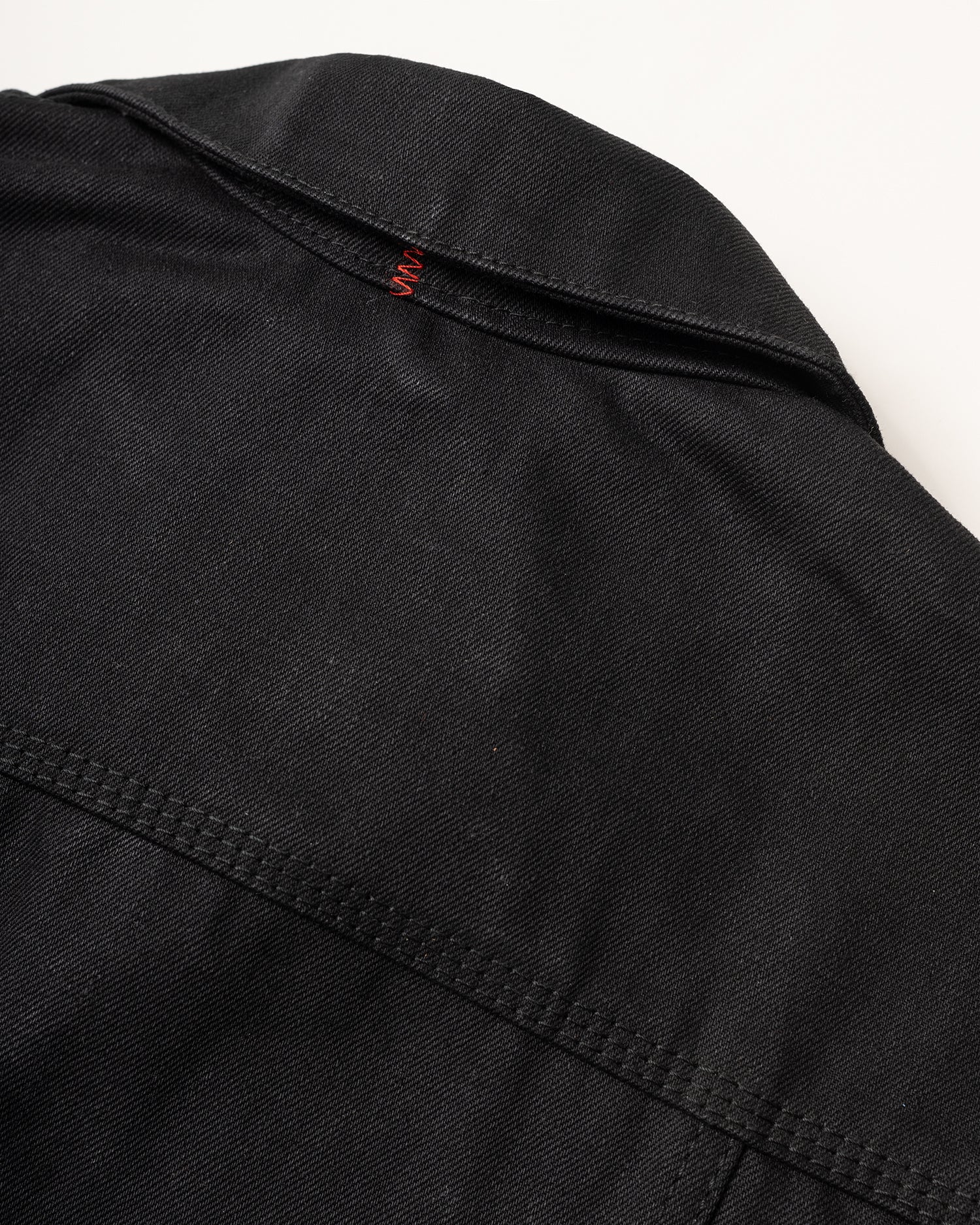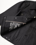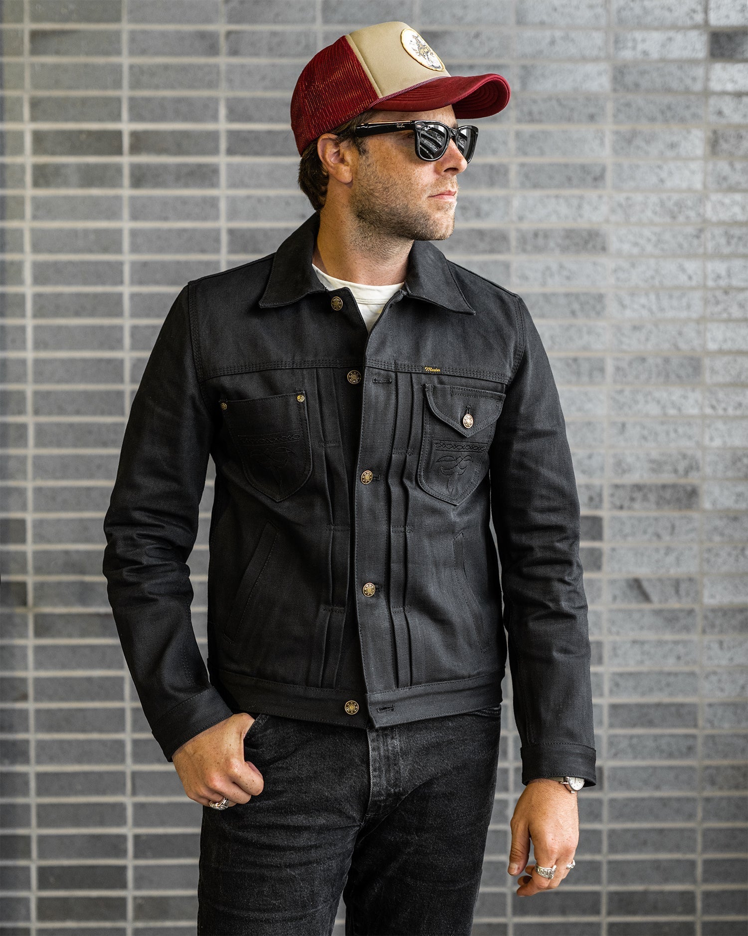 This jacket seamlessly combines functionality with a robust sense of style. Crafted with the same resilient spirit as its predecessor, the Blackjack is meticulously made from our signature 13oz selvedge denim. This black denim remains raw and exceptionally durable, maintaining its shape over time. The Blackjack proudly showcases a red line Selvedge ID, reinforced with triple-stitched seams for heightened longevity.
