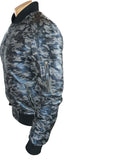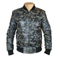 Our Bomber Grey Camouflage Military print leather jacket is a fantastic menswear essential that will work great in your casual rotation. This jacket has Zipper Closure, a Ribbed collar, Ribbed Cotton cuffs, 2 pockets inside, and 2 functional zipped pockets outside that will give you warmth and comfort.