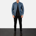 Bomia Ma-1 Blue Leather Bomber Jacket