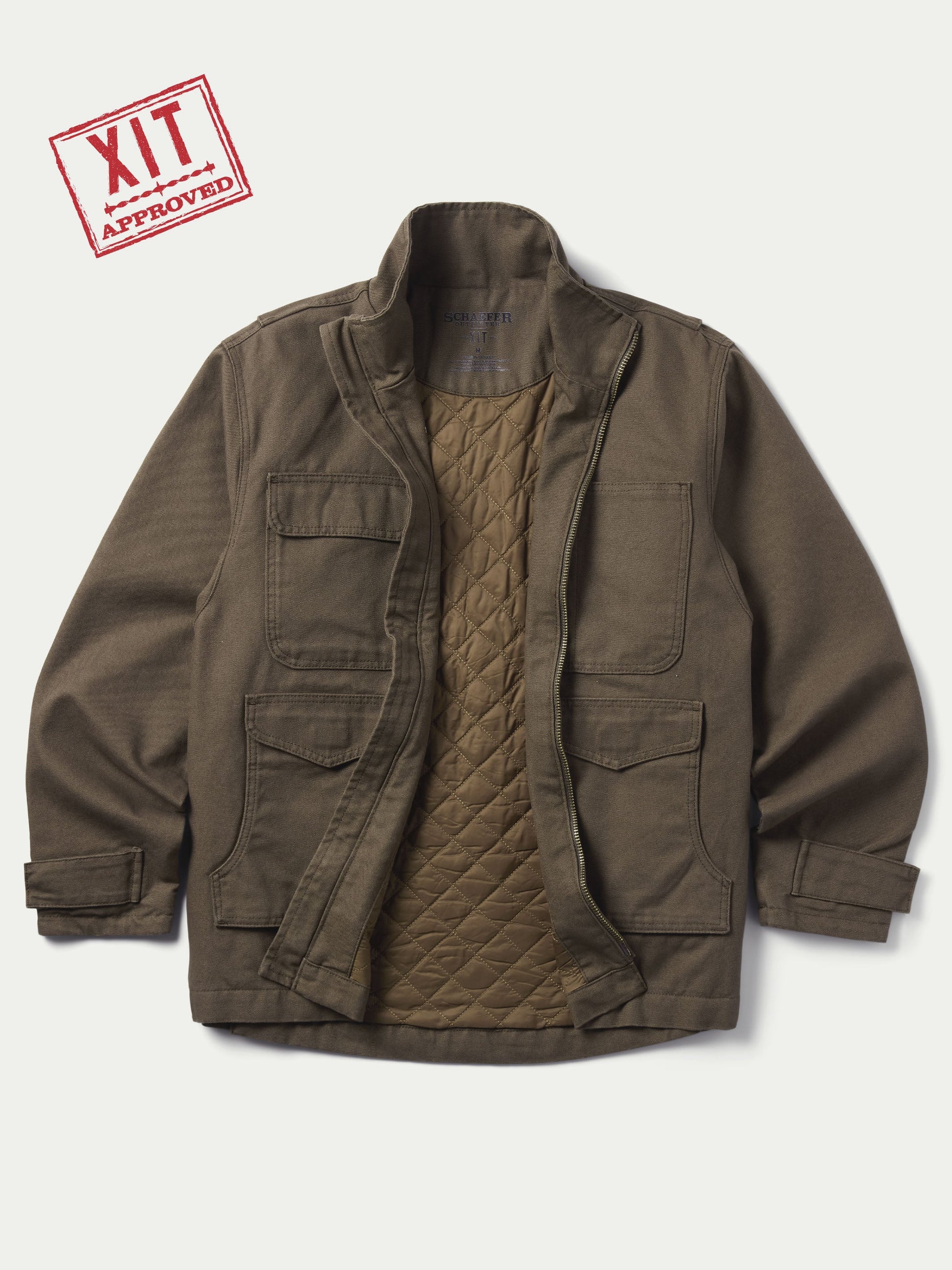 The ultimate ranch jacket. 7-Pocket front for maximum storage with bi-swing pleat at the back armholes, underarm gusset, and pleated elbows for 360° range of motion. A quilted liner adds extra warmth, while snap-out riding vents allow for in-saddle wear.