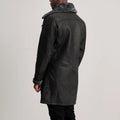 Charles Distressed Black Leather Shearling Double-Breasted Coat