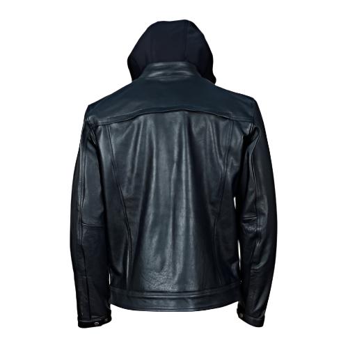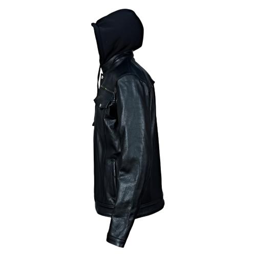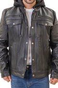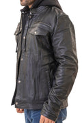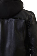 Easton Black trucker motorcycle leather jacket with hood